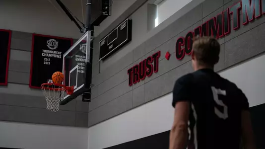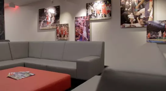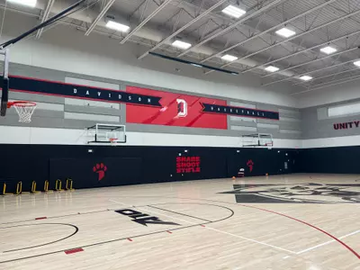 The 50,000-square-foot space provides two practice courts for Davidson's men's and women's basketball teams and the volleyball team. This additional gym space will help alleviate the growing needs of Davidson's club and intramural programs, as well. Also located in the new center are coaches' offices, administrative space, locker rooms, team rooms and film rooms for men's and women's basketball.